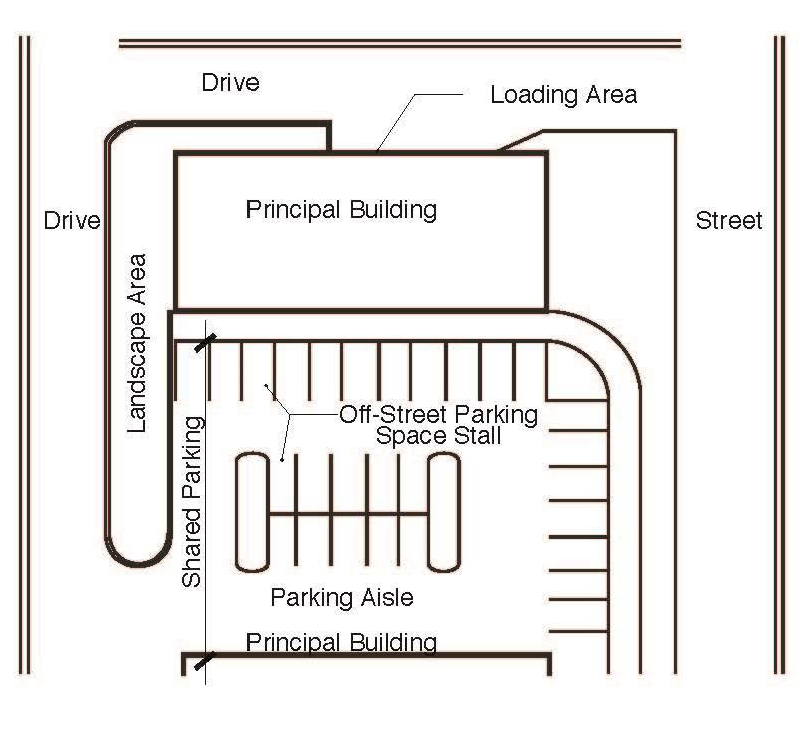 Off-street parking means a site or portion of a site devoted to the off-street parking of motor vehicles, including parking spaces, aisles, access drives and landscaped areas. See Figure 2-3.