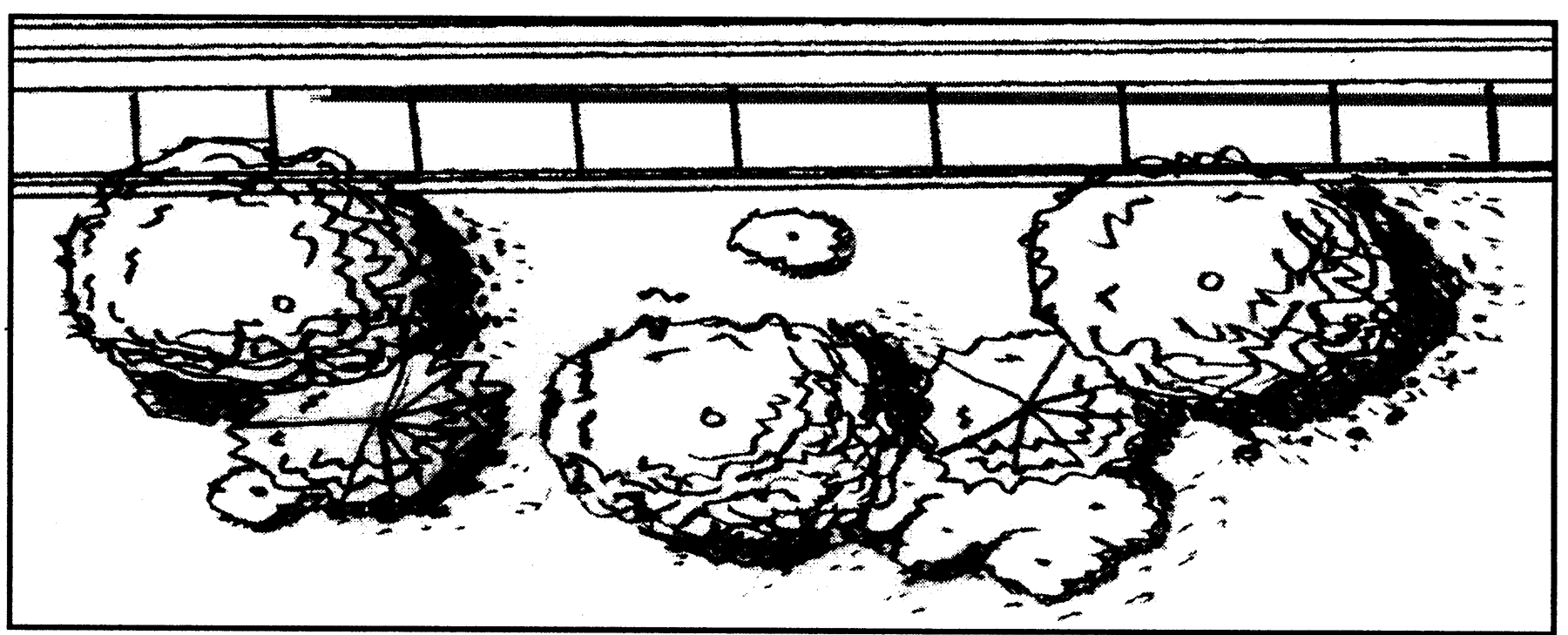 Buffers must be clearly indicated on submitted site plans for permit approval and are to be drawn to the same scale. Existing vegetation that will be protected and retained as part of the buffer must be included with all new proposed plantings within the buffer areas and identified on the required tree survey. Proposed plantings are to be drawn depicting maturity.