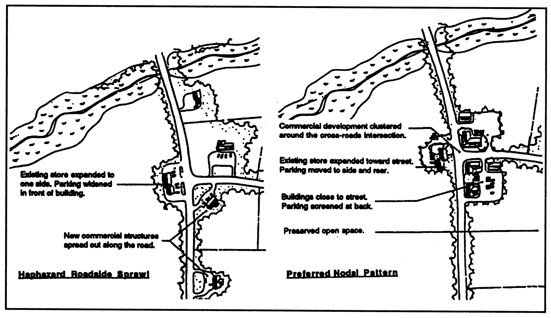 Encourage rural and neighborhood commercial development areas to develop in the following manner: