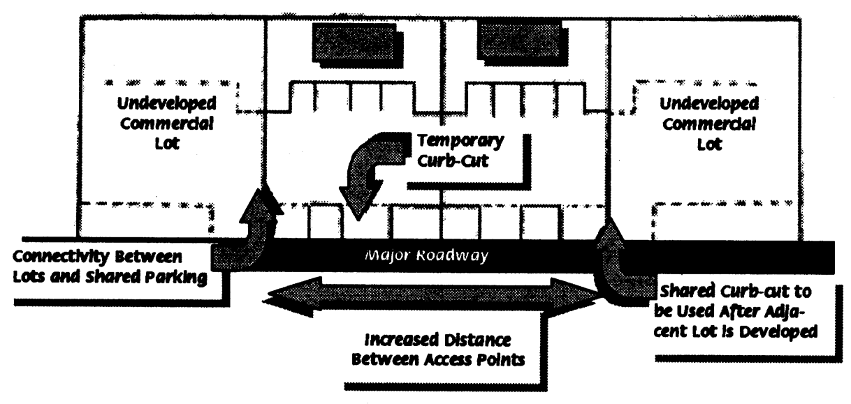 Multiple vehicular entrances along highways that present a threat to public safety through numerous vehicular turning movements, and which inhibit higher operating speeds and higher levels of service.