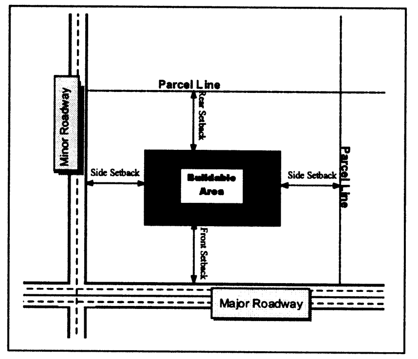 Side yard: 15 feet minimum.