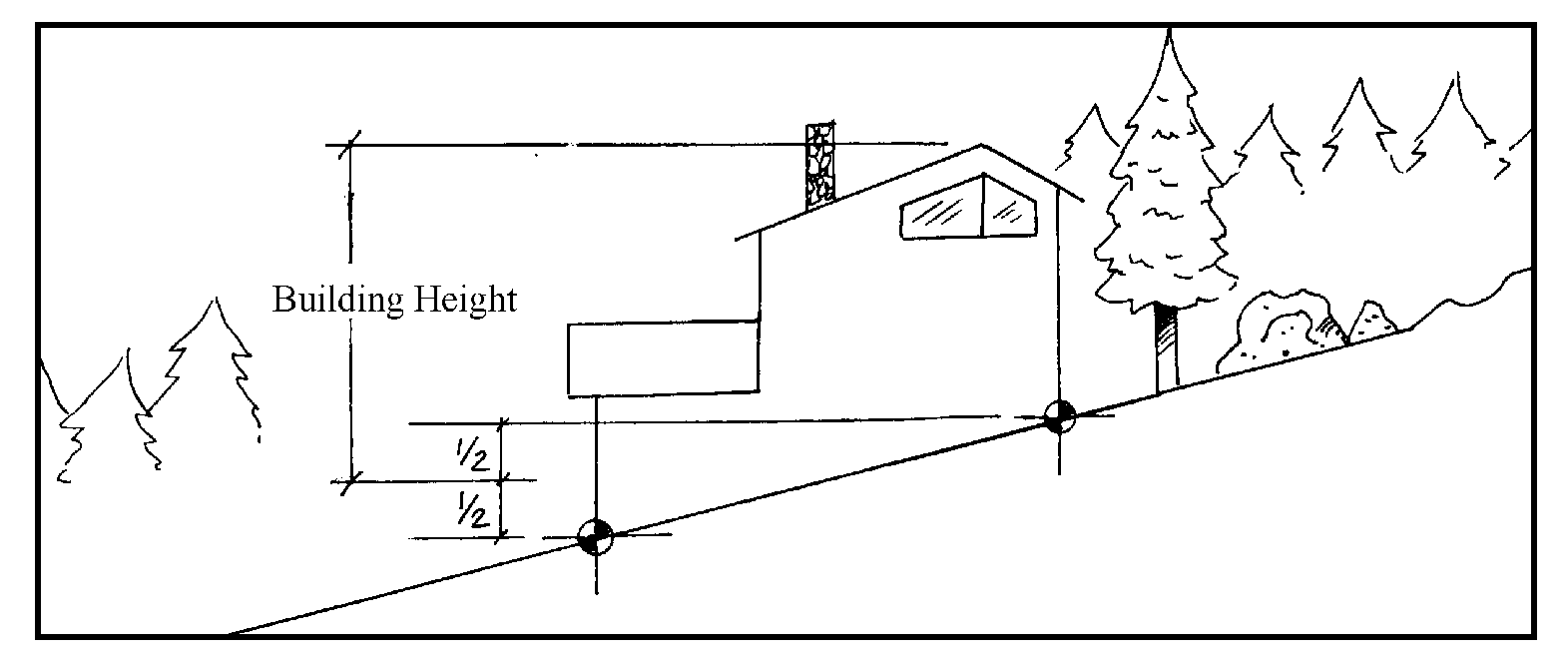 "Building height" shall mean the vertical distance measured from the average level of the highest and lowest point of that portion of the lot covered by the building to the highest point of the structure.