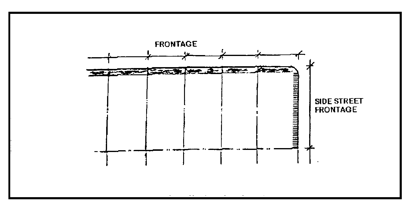 "Yard, street side" shall mean an area extending from the required front yard (or, where there is no required front yard, from the front lot line) to the rear lot line, and from the side street lot line, or the existing or future side street right-of-way (whichever is greater) to a structural setback line parallel thereto.