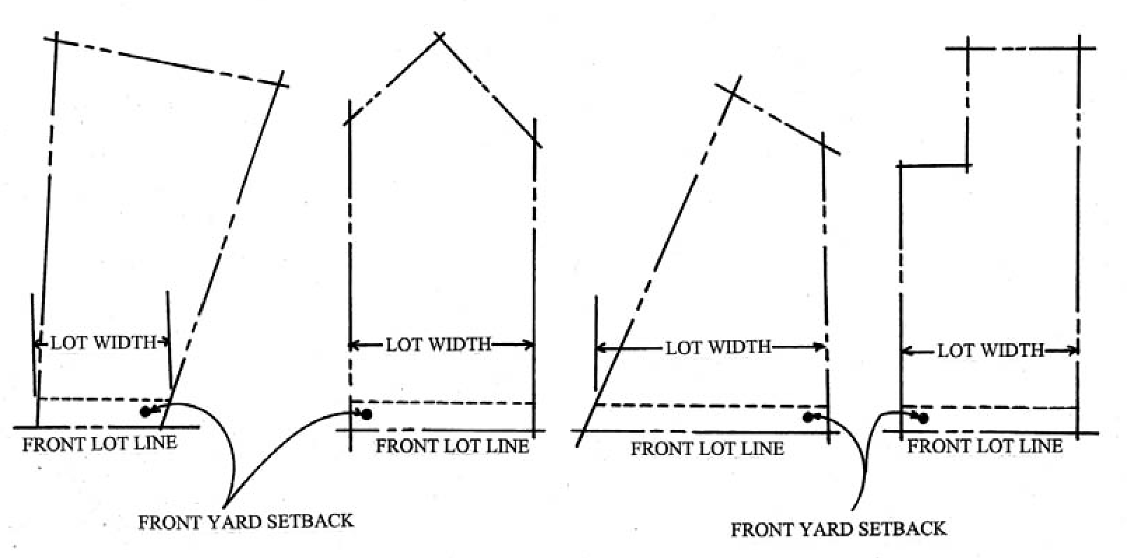 "Yard, front" shall mean an area extending across the full width of the lot between the front lot line or the existing or future street right-of-way and a structural setback line parallel thereto. On corner lots, the shortest street frontage shall be the front yard in residential land use districts, while the longest street frontage shall be the front yard in commercial/industrial land use districts.
