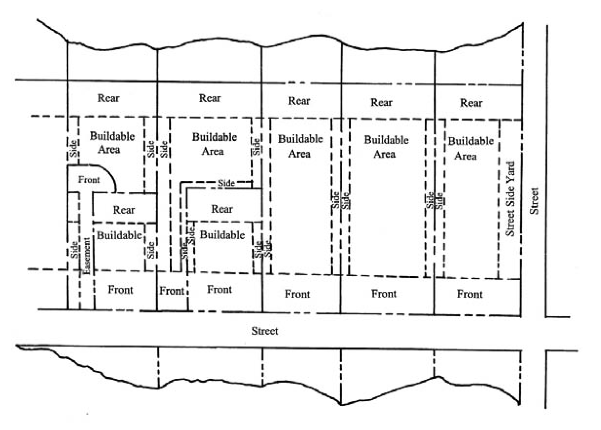"Buildable area" shall mean the portion of the lot remaining after deducting all required setbacks and easements from the gross area of the lot.