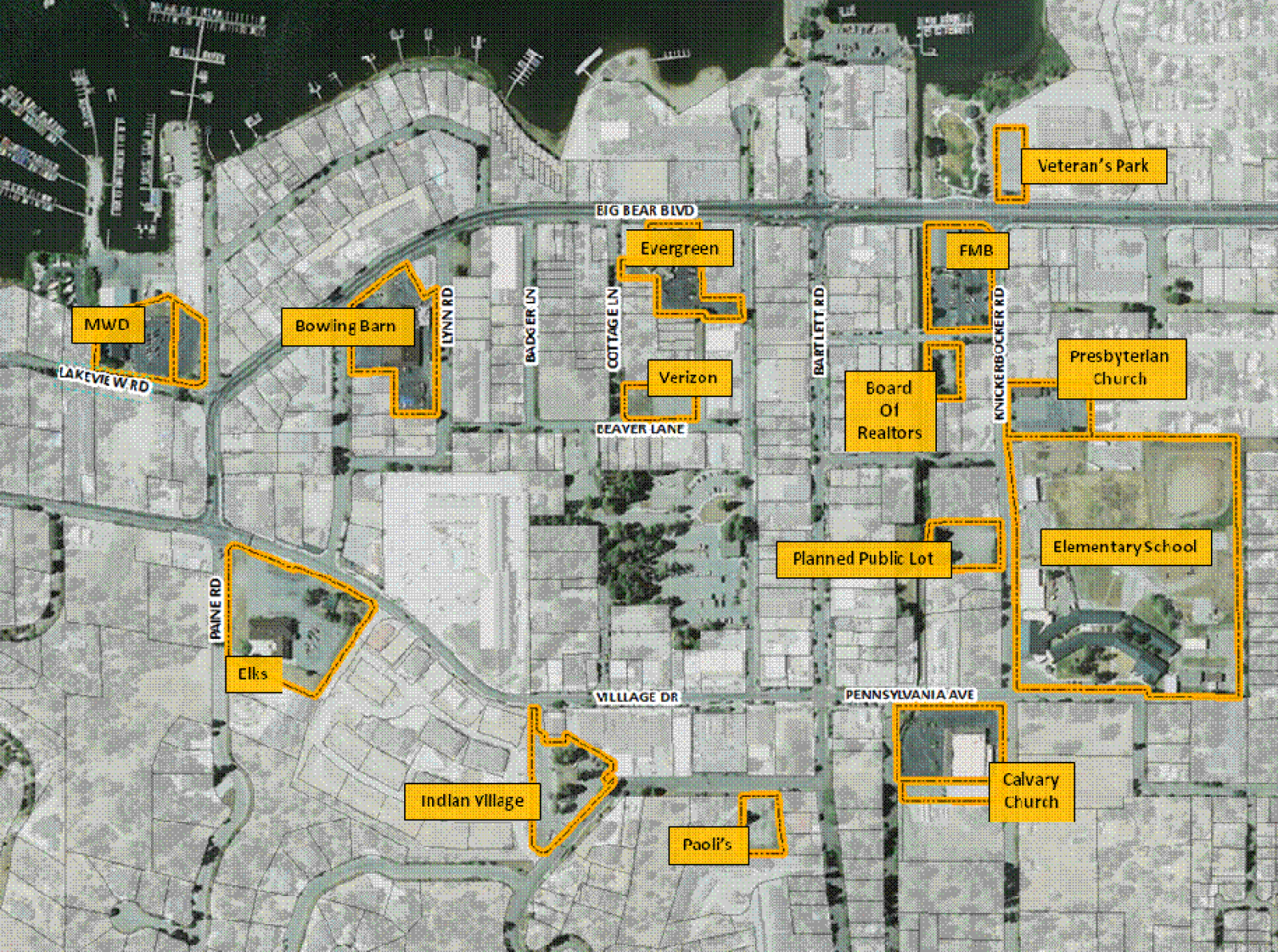 Public facilities include land and facilities owned by the City of Big Bear Lake. They include parks, sidewalks, streets and parking lots, which are intended to be resources freely available for use by residents and visitors for recreation, transportation, and parking.
