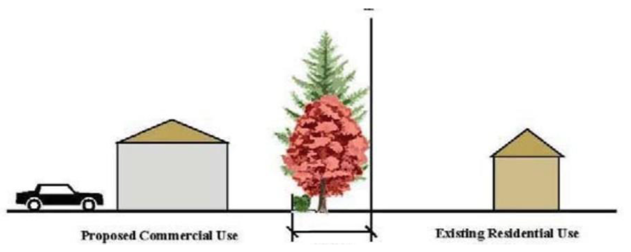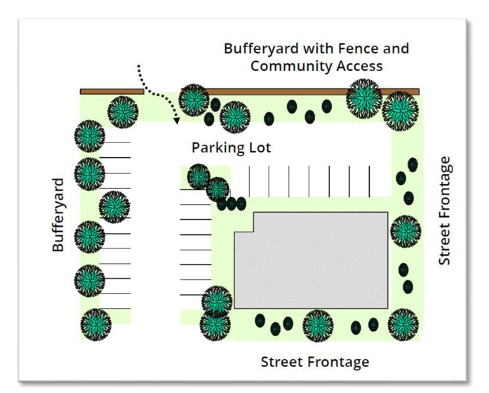 Figure 27-1200.C. Bufferyards are located between different types of development.