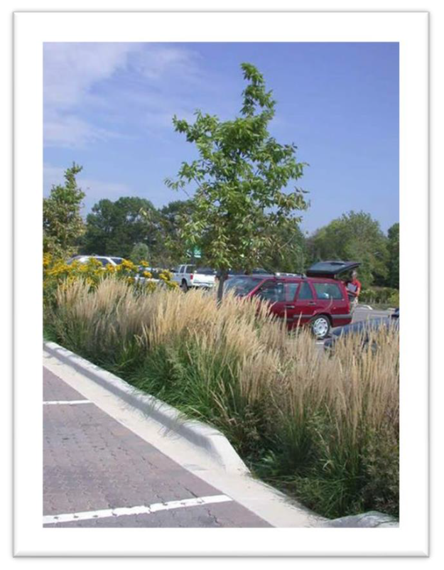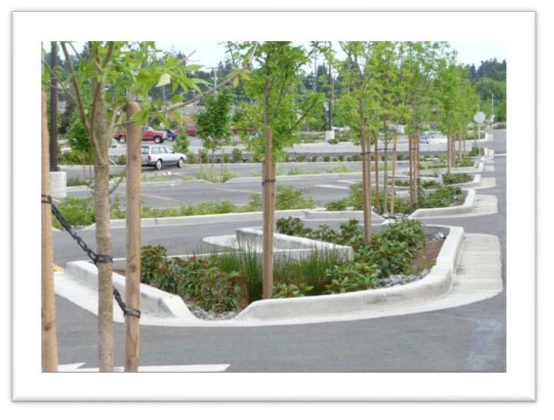 Breaking up large expanses of parking lots;