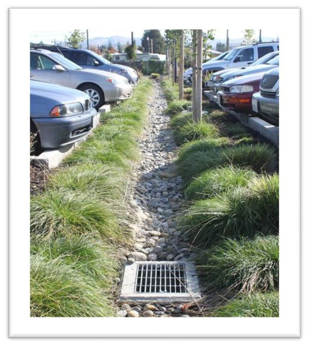 Infiltration trenches, vegetated swales, bio detention areas, and similar facilities as approved by the city are employed to reduce runoff, or