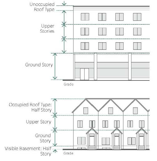 Story, half. An occupied story either in a visible basement of the building or an occupied story fully within the roof structure.