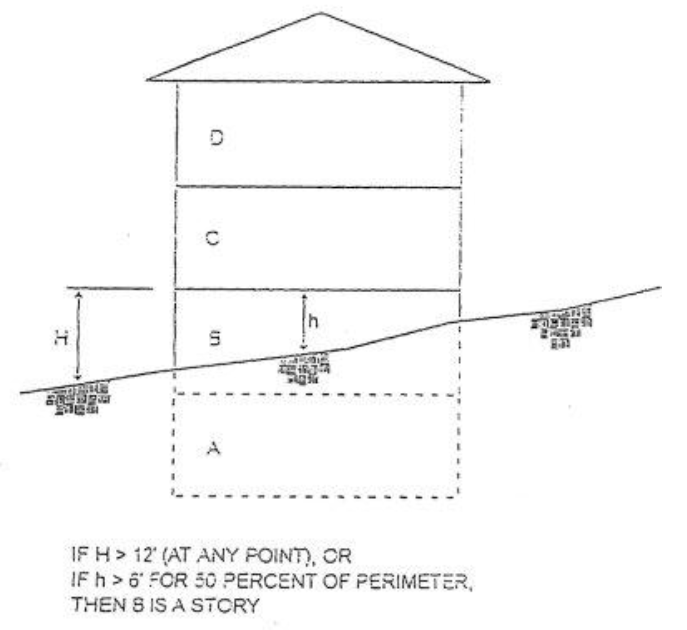Basement. If the finished floor level directly above a basement, cellar or unused under-floor space is more than six (6) feet above grade as defined herein for more than fifty (50) percent of the total perimeter or is more than twelve (12) feet above grade as defined herein at any point, such basement, cellar or unused under-floor space shall be considered a story. Refer to Figure 27-1800-6.