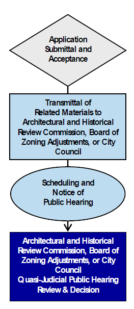 The Architectural and Historical Review Commission, Board of Zoning Adjustments, or City Council, as appropriate, shall review an Appeal application in accordance with the standards of this Ordinance applicable to the interpretation or decision being appealed.