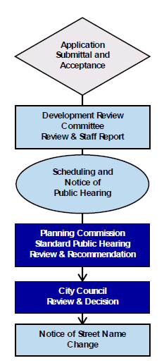 Except as modified by Sections 23-2-4(V)(3)b—e. below, review of an application for a Street Name Change shall be subject to the common review procedures and requirements established in Section 23-2-3, Standard Review Procedures