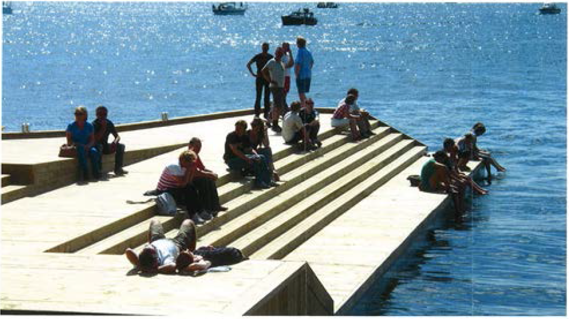 The construction of piers and decks to give the public access to the water edge is encouraged.