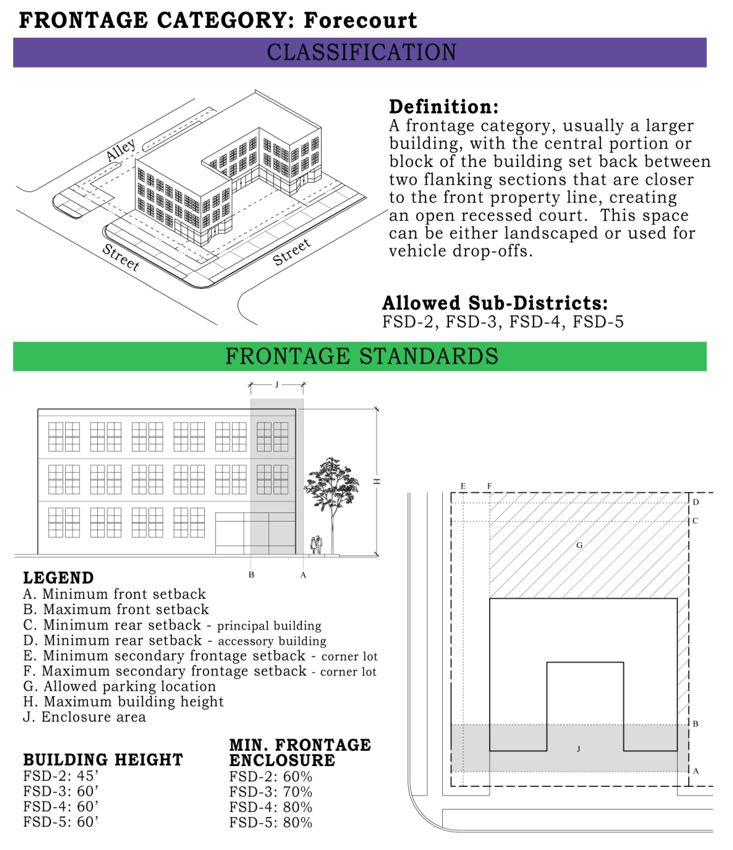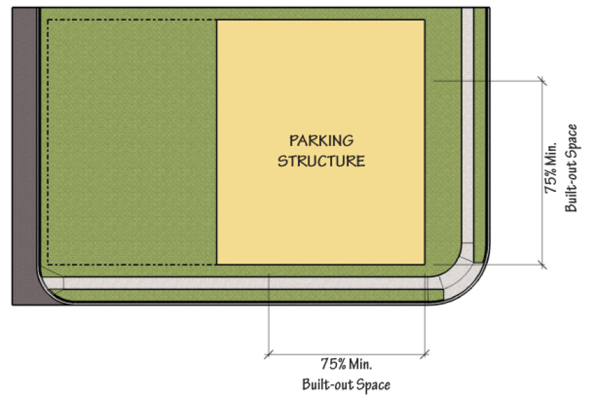 The areas and proportionate amount of parking to be developed.
