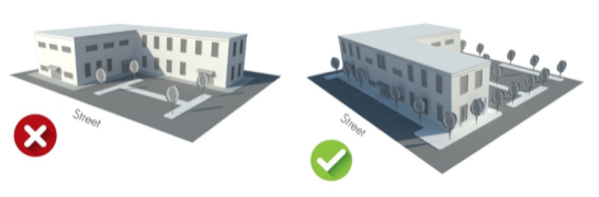 This design standard is intended to minimize the visibility of off-street surface parking from the street in order to promote engaging and attractive streetscape.
