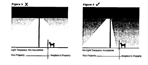 Light Trespass. Light falling where it is not wanted or needed; or shines beyond the property on which the luminaries is installed. See figures 3 and 4.