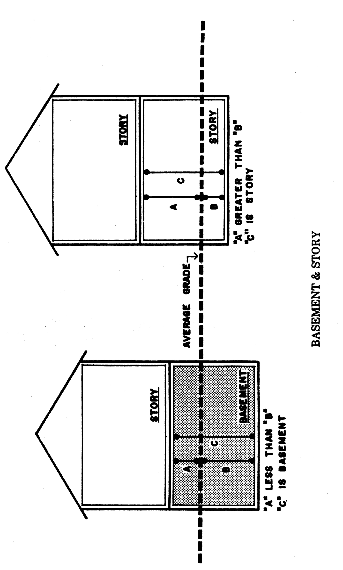 Basement shall mean that portion of a building which is partly or wholly below grade but so located that the vertical distance from the average grade to the floor is greater than the vertical distance from the average grade to the ceiling. A basement shall not be counted as a story and a basement shall not be used in computing the minimum required floor area.