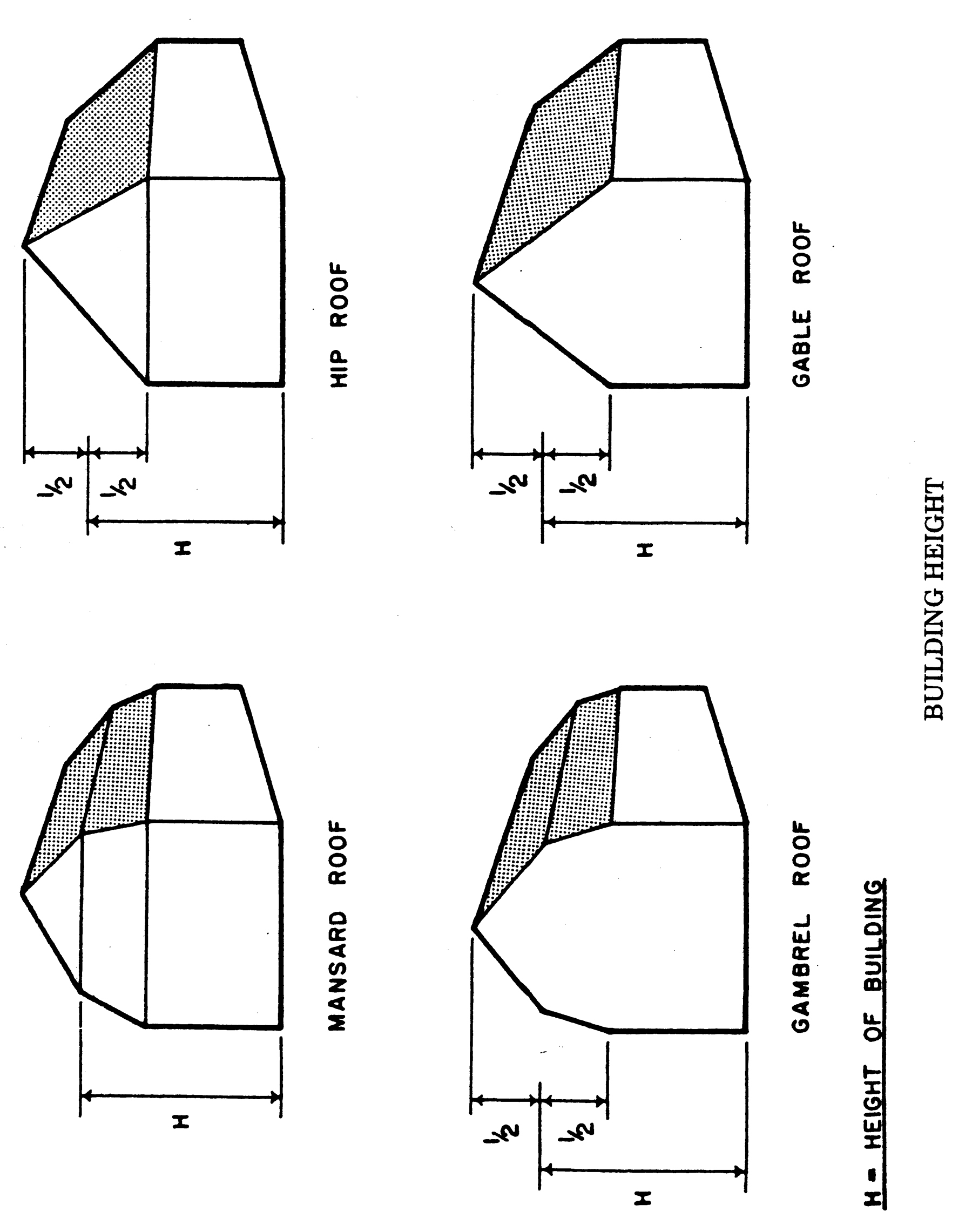 Building height shall mean the vertical distance measured from grade to the highest point of the roof surface for flat roofs; to the deck line of mansard roofs; and to the average height between eaves and ridge for gable, hip and gambrel roofs.