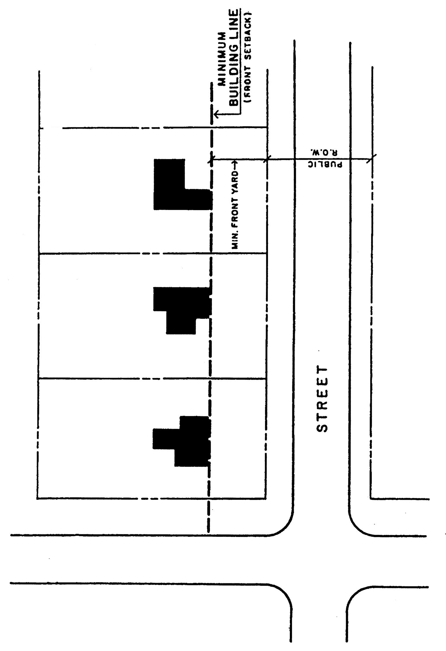 Parking setback shall mean a line back of a lot line between which line and the lot line no vehicular parking or standing or access aisles other than necessary drives between parking areas and the public right-of-way and more or less perpendicular thereto may be permitted, except as provided in this chapter.