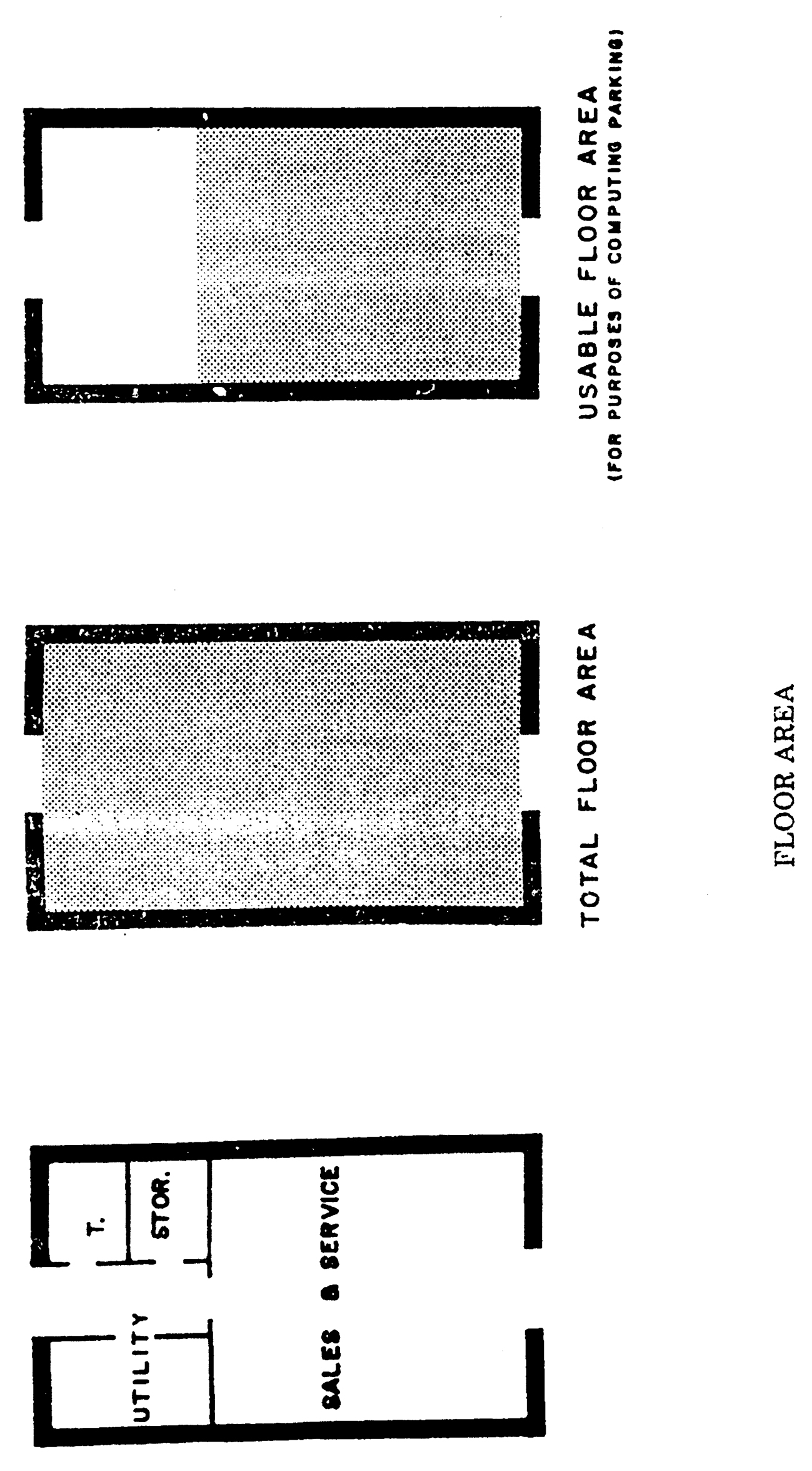 Floor area, usable (for the purposes of computing parking) shall mean that area used for or intended to be used for the sale of merchandise or services, for use to serve patrons, clients or customers and all that area used for employee work space. Such floor area which is used or intended to be used principally for the storage or processing of merchandise, hallways or elevators, or for stairs, bulkheads, utilities or sanitary facilities, shall be excluded from this computation of usable floor area. Measurement of usable floor area shall be the sum of the horizontal areas of the several floors of the building, measured from the interior faces of the exterior walls.