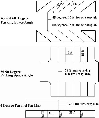 There shall be provided in all districts, at the time of erection or enlargement of any main building or structure, automobile off-street parking spaces with adequate access to all spaces. The required number of off-street spaces, in conjunction with all land or building uses, shall be shown on a plan included with the application for a building permit. Compliance with the regulations of this section shall be confirmed prior to the issuance of a certificate of occupancy, as prescribed below: