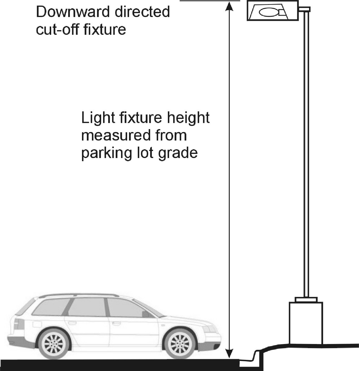 Parking lot poles shall be located in parking lot islands or in the periphery parking lot area. Light poles shall be prohibited in parking spaces.