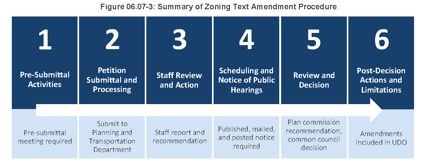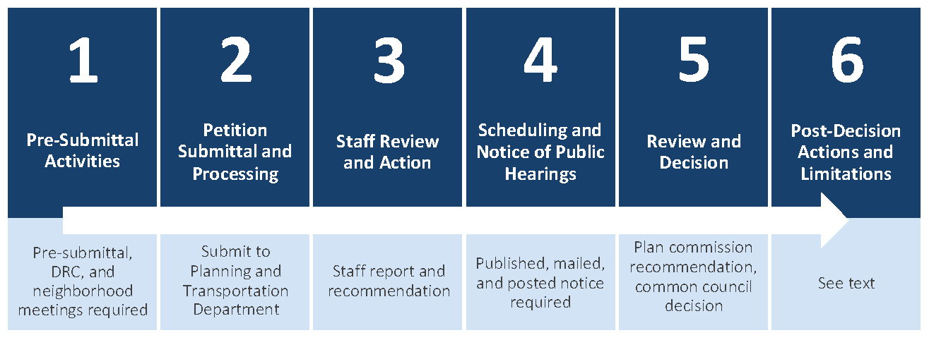 To hear, review, and make recommendations to the Common Council on the PUD district ordinance and preliminary plan for a proposed Planned Unit Development. When stipulated by the Plan Commission at the time of preliminary approval, to review and approve the final plan for a Planned Unit Development, unless the Plan Commission has delegated that authority to the Planning and Transportation Department;