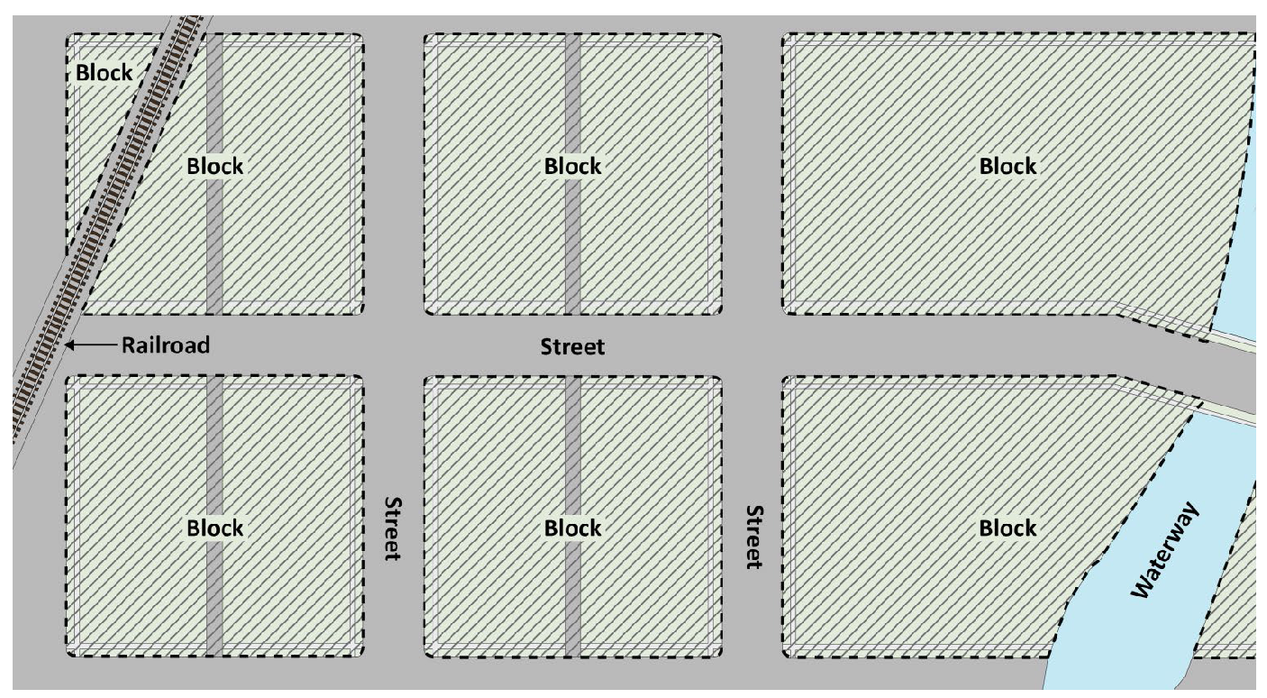"Block" means property abutting on one side of a street and lying between the two nearest intersecting or intercepting streets, intersecting railroad, intersecting waterway, or the end of a dead-end street.