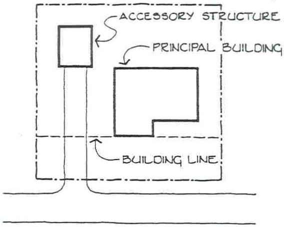Accessory structure means a structure detached from a principal building on the same lot and customarily incidental and subordinate to the principal building. See Figure 1: Accessory Structure.