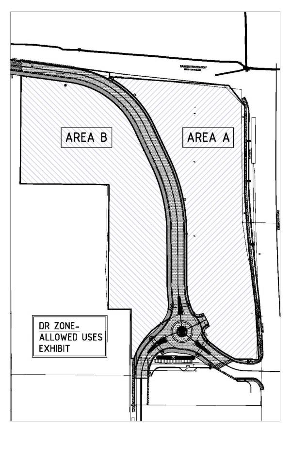 The following exhibit created two distinct areas within the DR zone (A and B) with specific land uses allowed in each area. Exhibit 1 depicts areas A and B: Exhibit 1. DR Zone Land Use Areas: