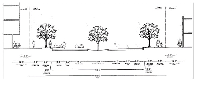 Street Cross-Section ST-95-63 for Blythewood Road west of the Interstate 77 right-of-way (so as to exclude Blythewood Road east of the Interstate 77 right-of-way) and Main Street/Wilson Boulevard