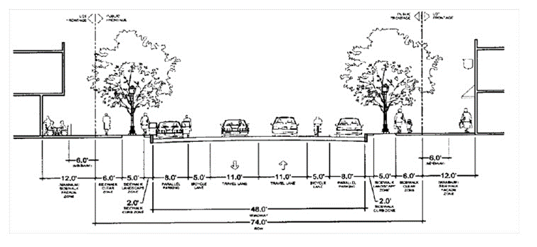 Illustrated below are the corresponding street cross-sections for the TC town center district.