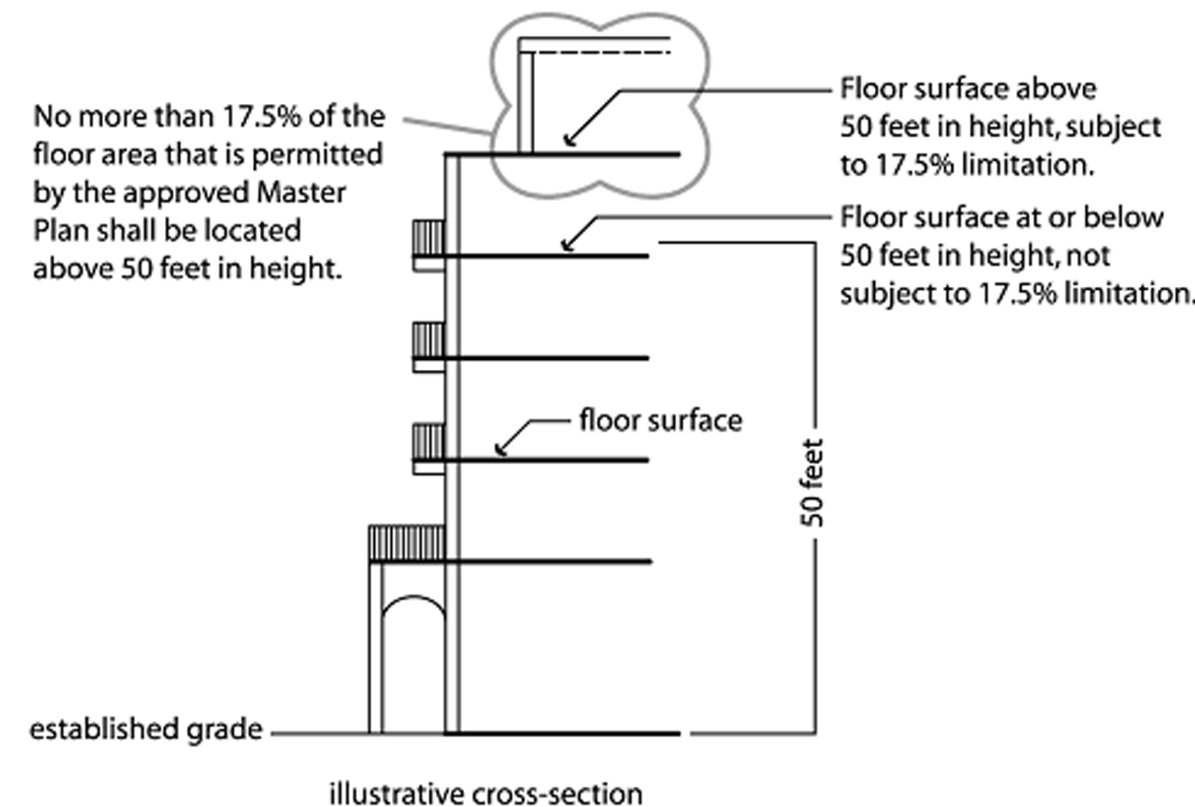 The maximum height of all buildings or structures shall be 85 feet, except as follows: