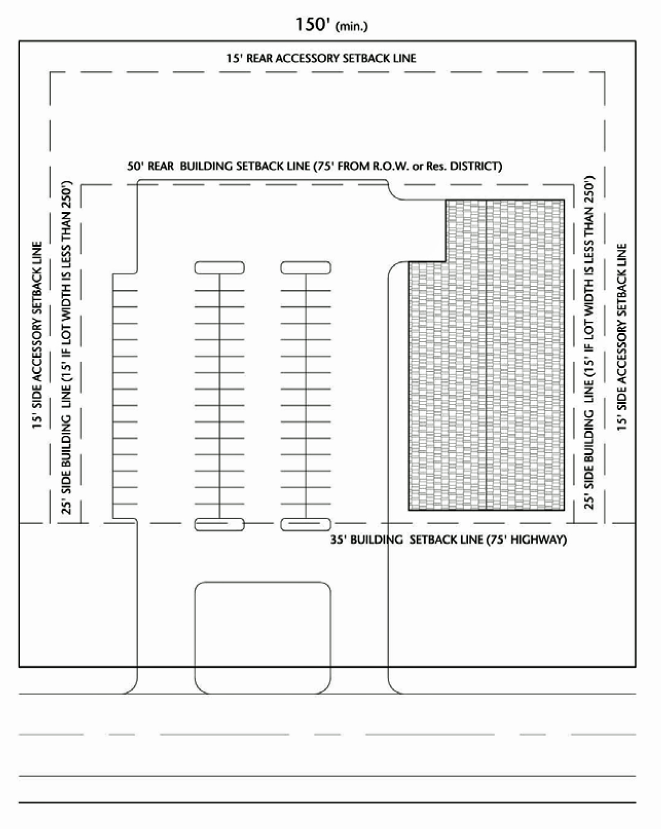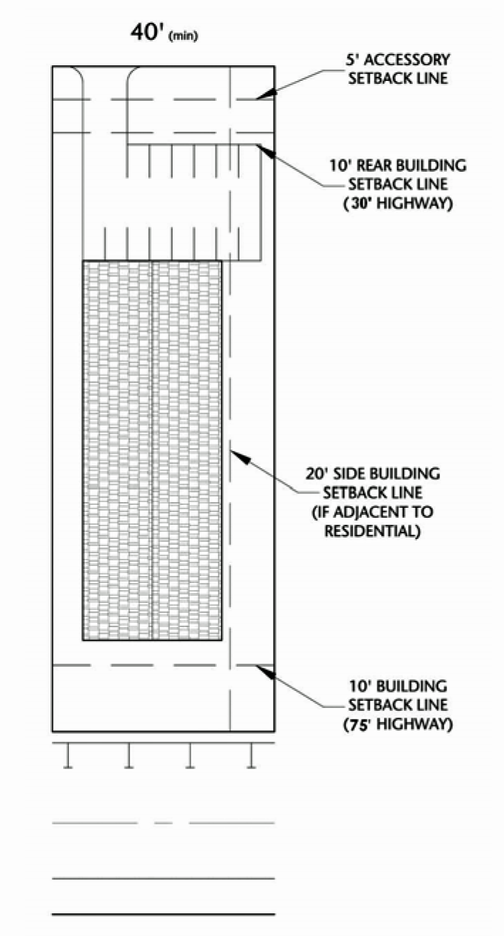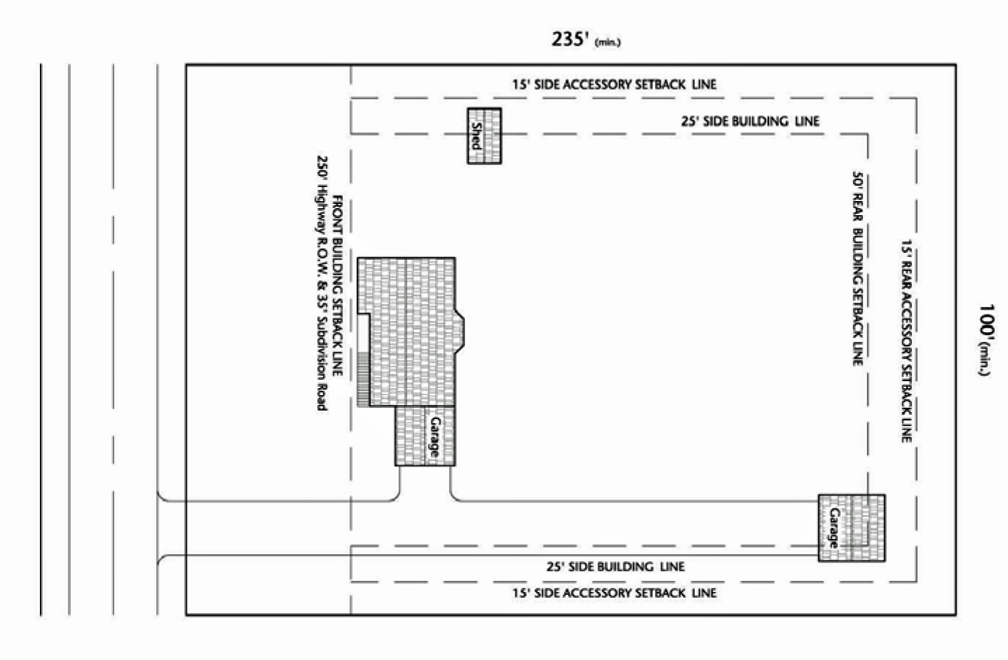 • Have a lot width of at least 250 feet measured at the building line.