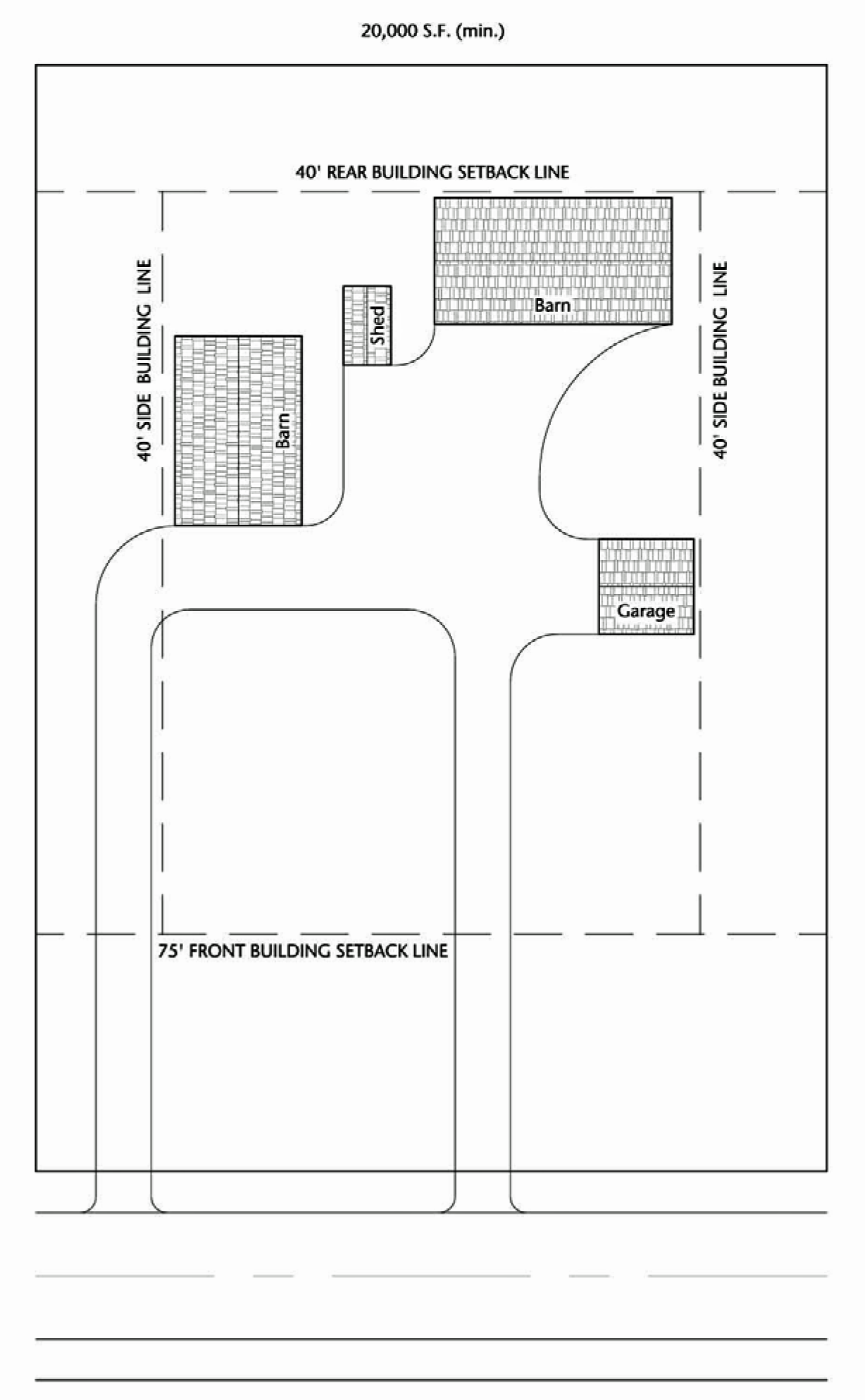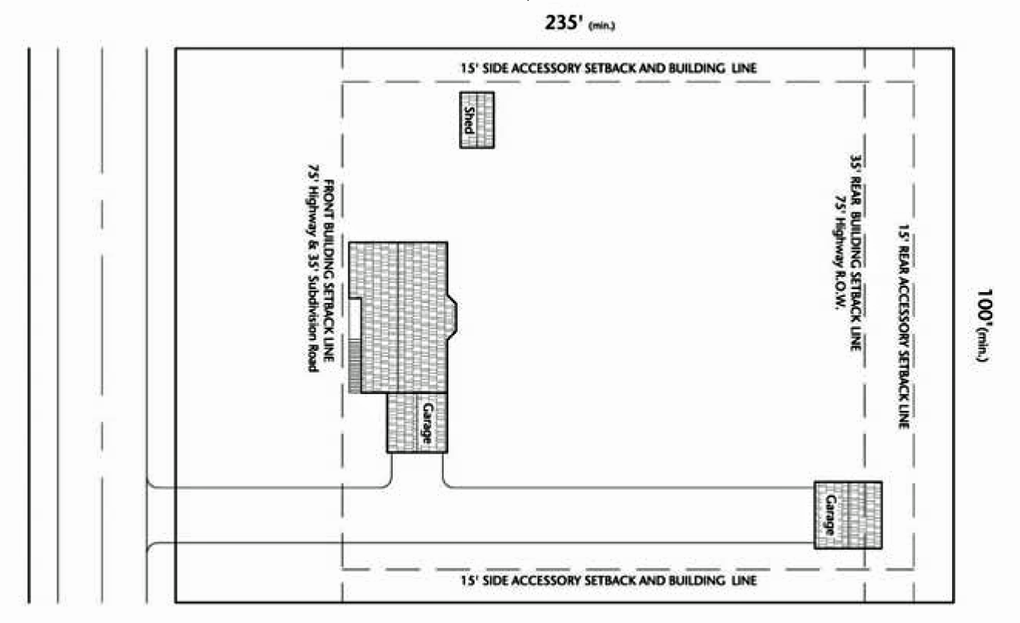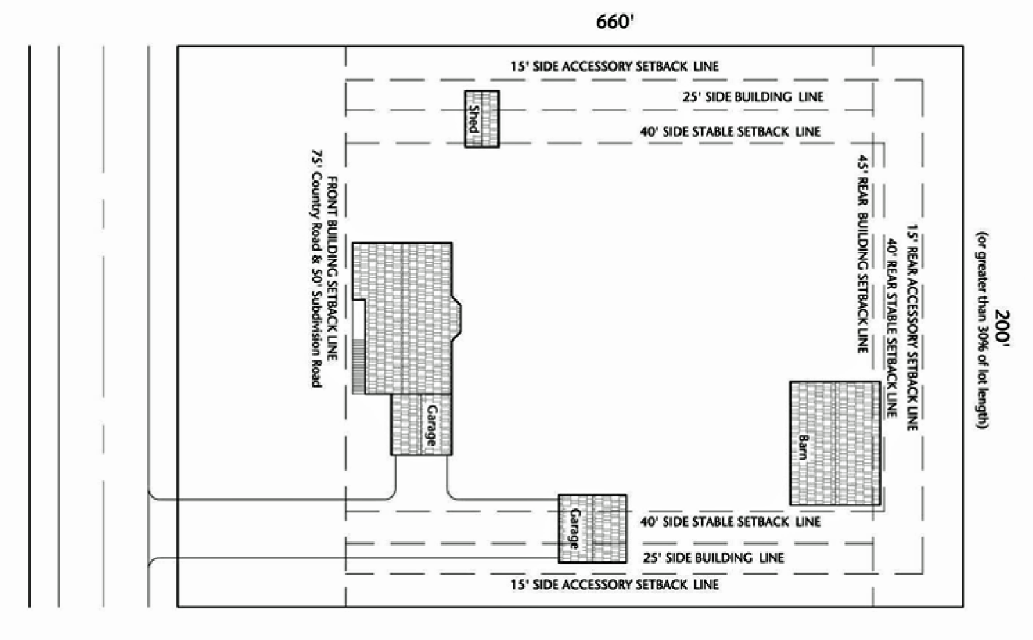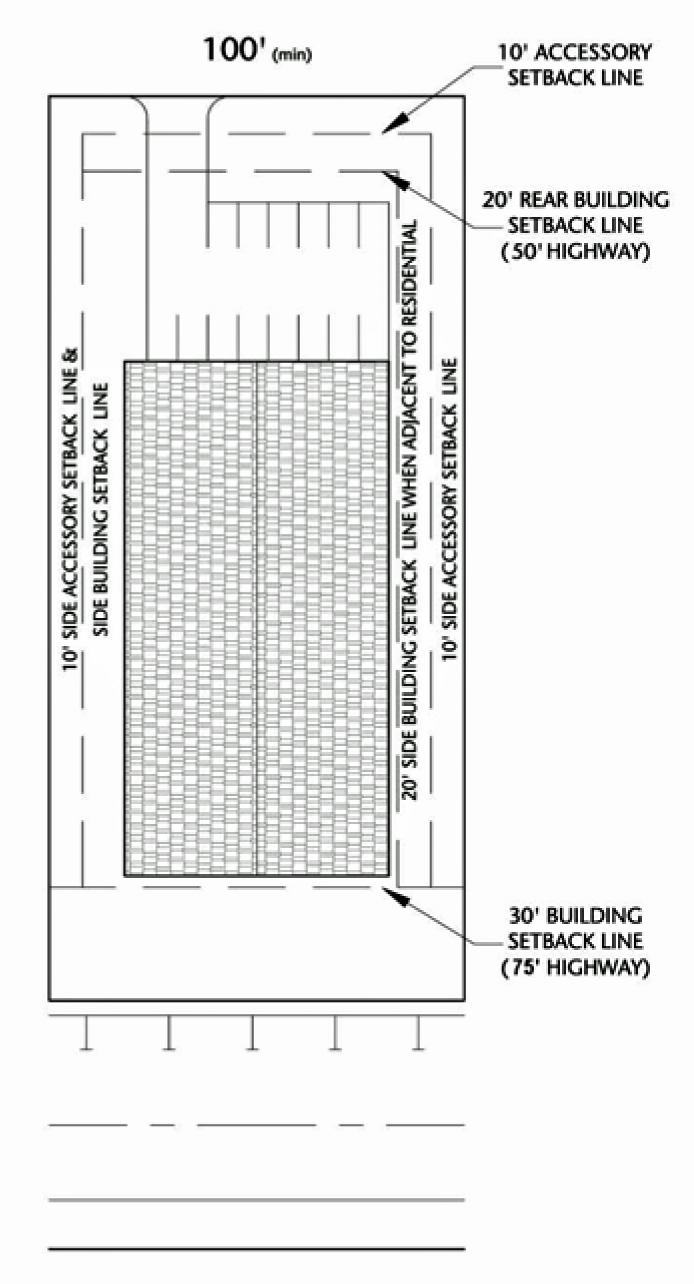 • Have a lot width of at least 250 feet measured at the building line.