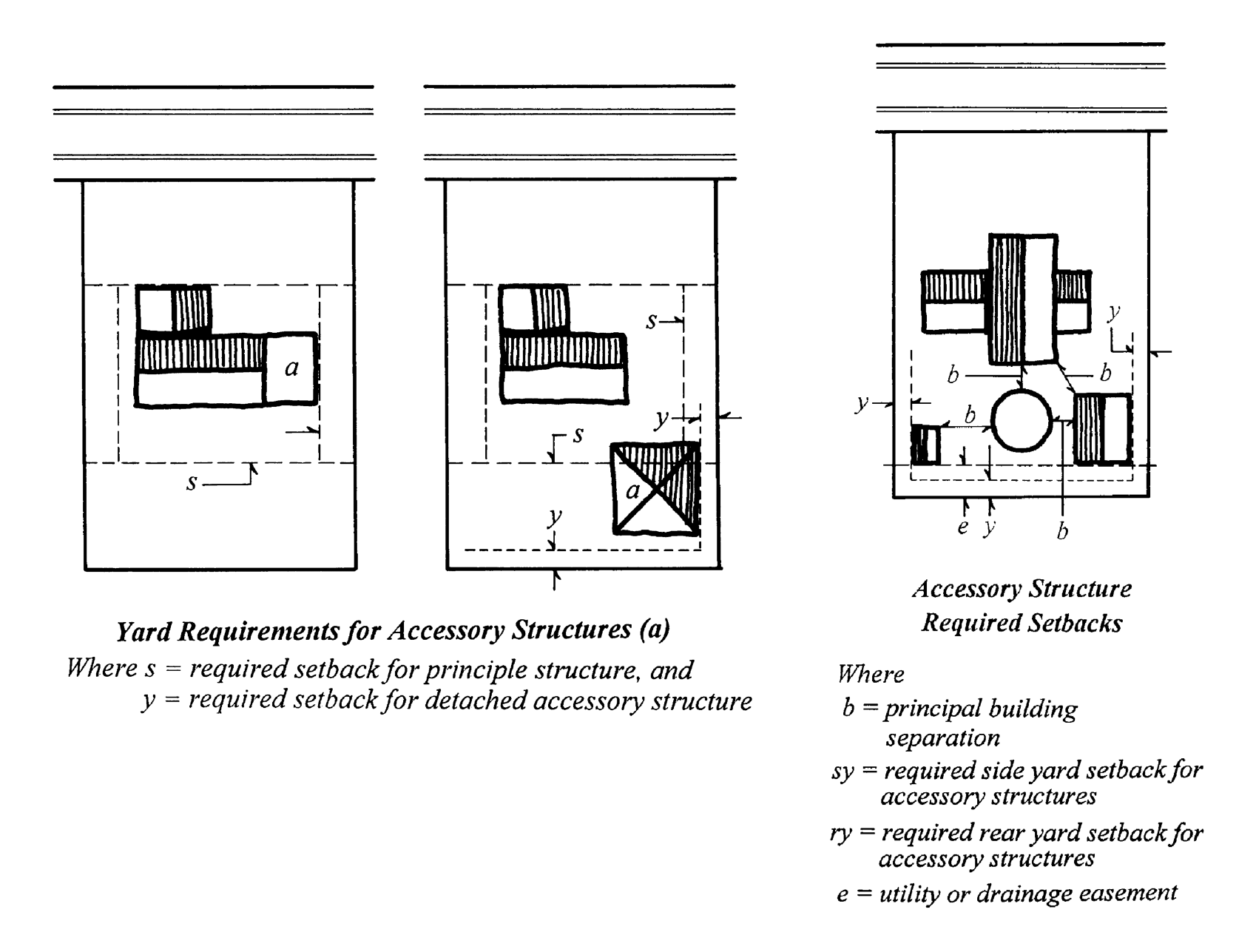 Detached accessory structures, except fences, and walls: