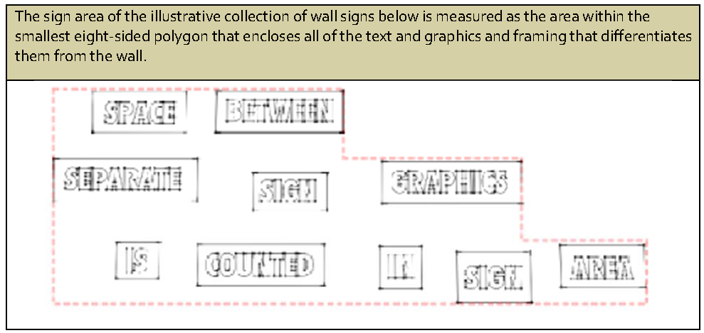 Relationship between maximum sign area and maximum signable area ratio. Where both a maximum sign area and a maximum signable area ratio are set out, the standard that results in polygram that encloses all of the text and graphics and framing that differentiates them from the wall.
