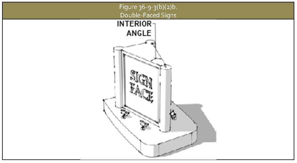 Only one display face is measured if the sign faces are parallel or form an interior angle of less than 45 degrees, provided that the signs are mounted on the same structure. If the faces are of unequal area, then sign area is equal to the area of the larger face.