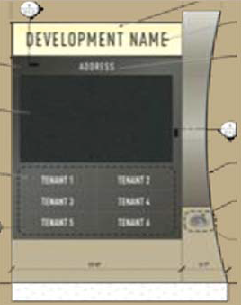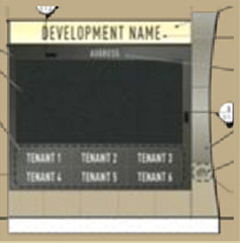Through the sign permit application, the development must identify tenants, storefronts, and businesses eligible for signage on the multi-tenant electronic message center sign.