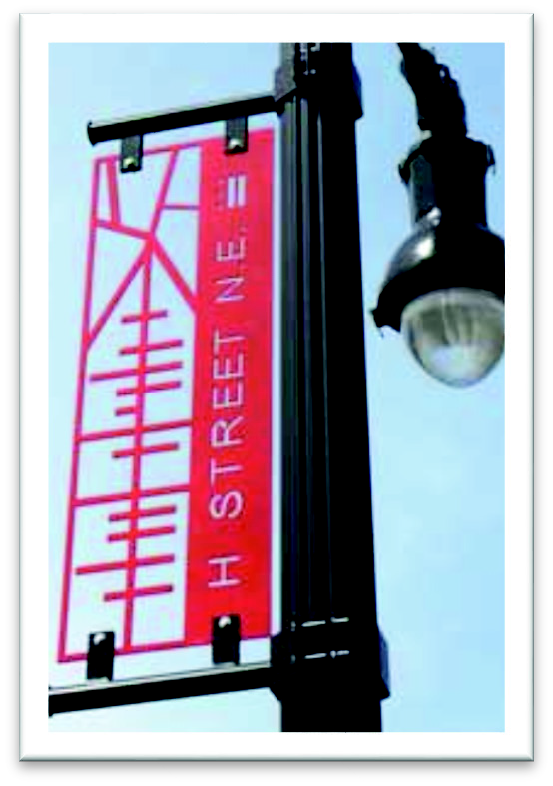 Provide appropriate identification in pedestrian-oriented areas as well as in vehicular-oriented areas;