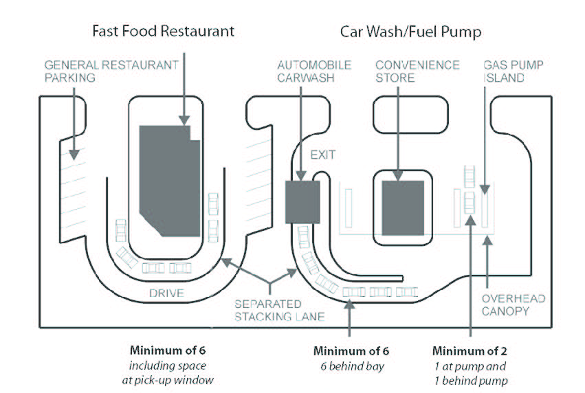 Vehicle stacking areas. The following standards shall apply to businesses that contain a drive-through establishment (e.g., restaurant or financial institution), and are a stand-alone use (e.g., automatic teller machine):