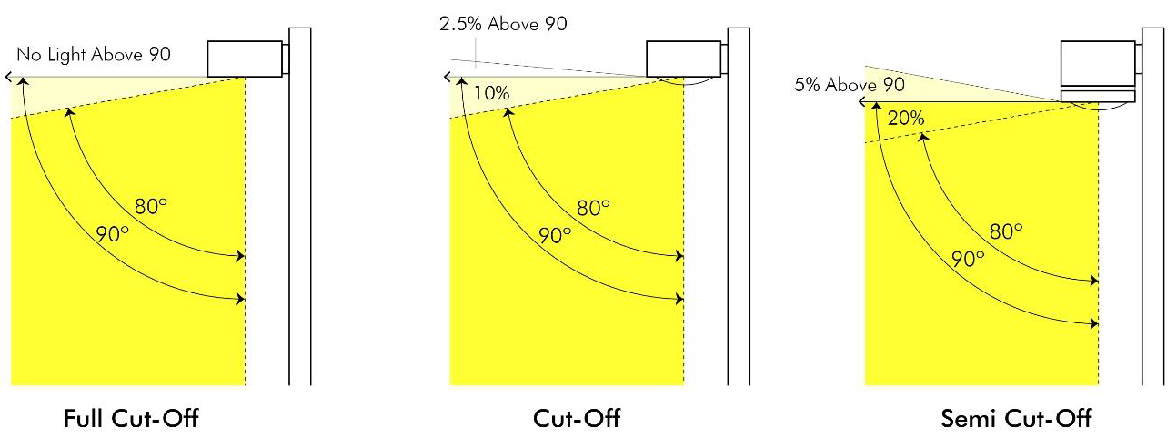 b. ;hg;Cutoff fixtures emit no more than 2.5% of its light above 90 degrees and 10%