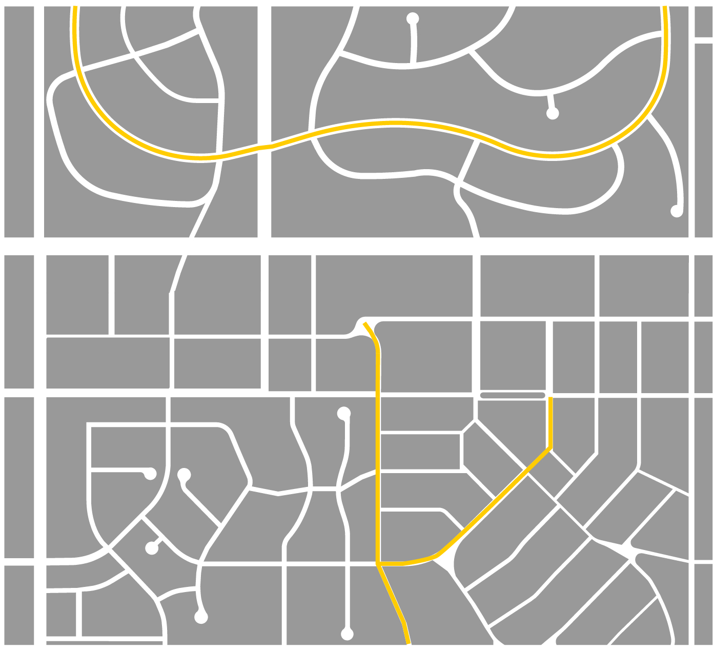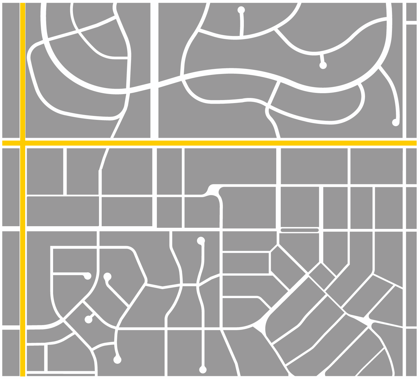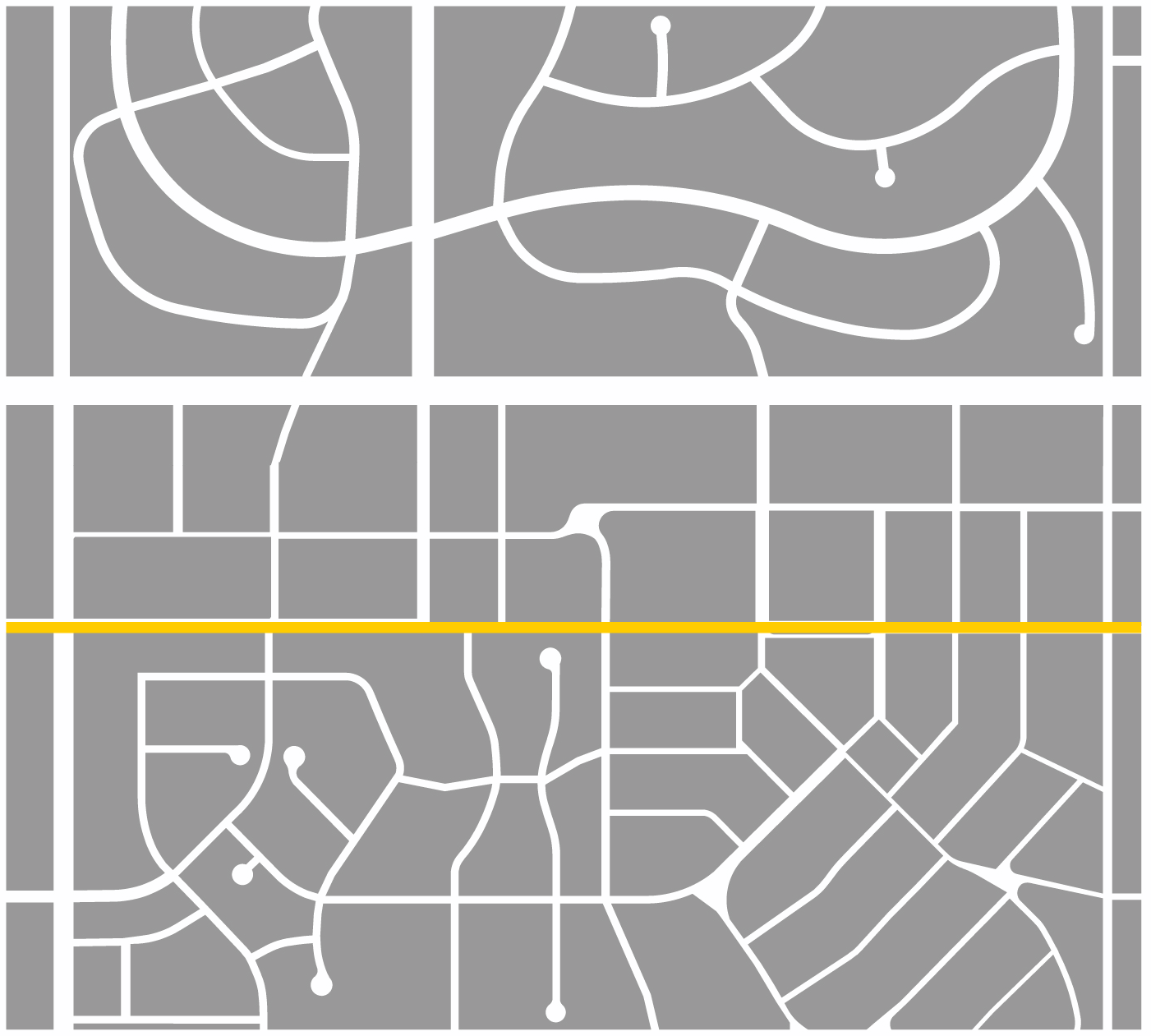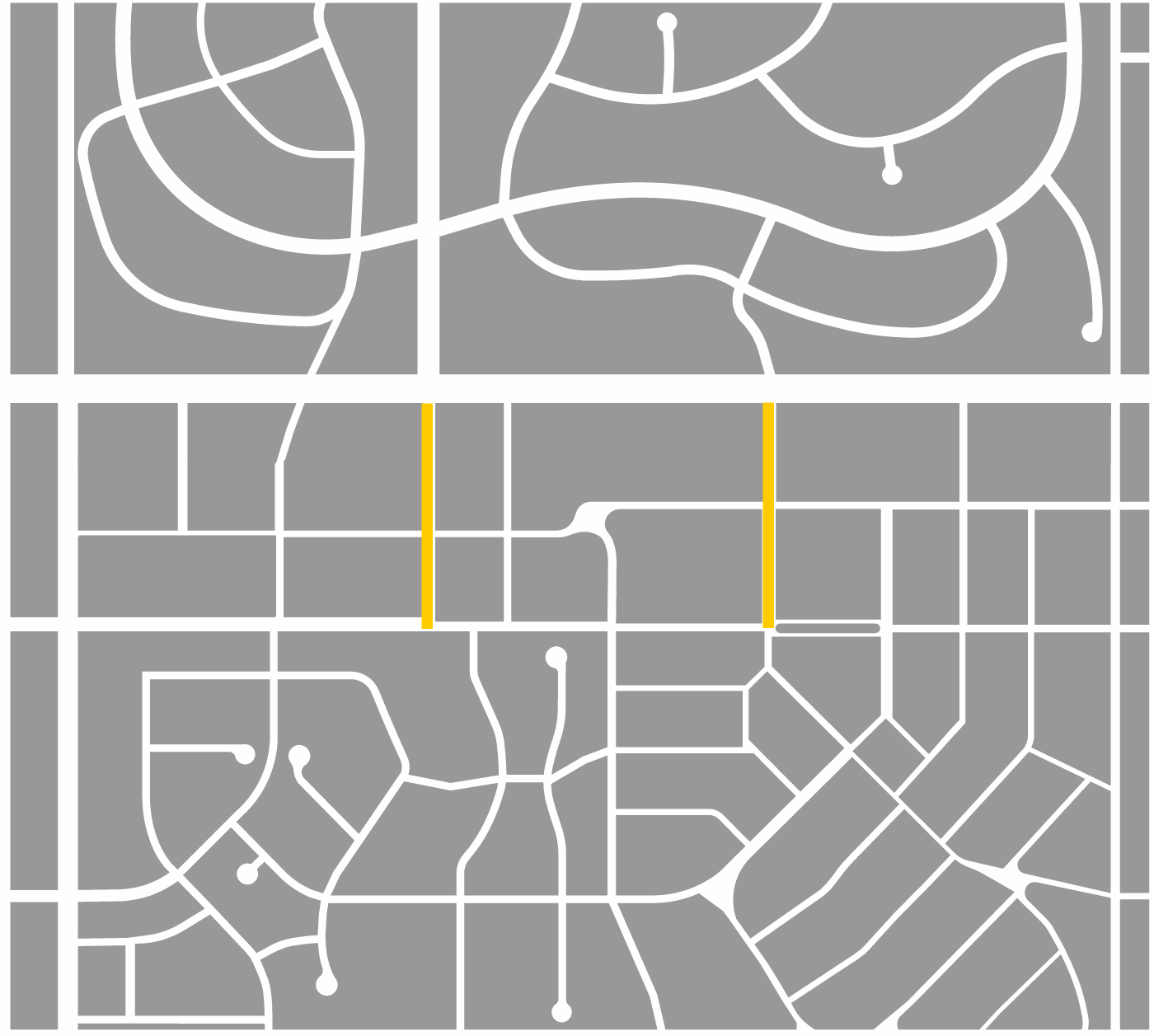 Provide multiple and direct connections between neighborhoods and local destinations such as parks, schools, and shopping, particularly where collector streets or neighborhood connector streets knit multiple projects or neighborhoods together, and avoid major streets becoming barriers.