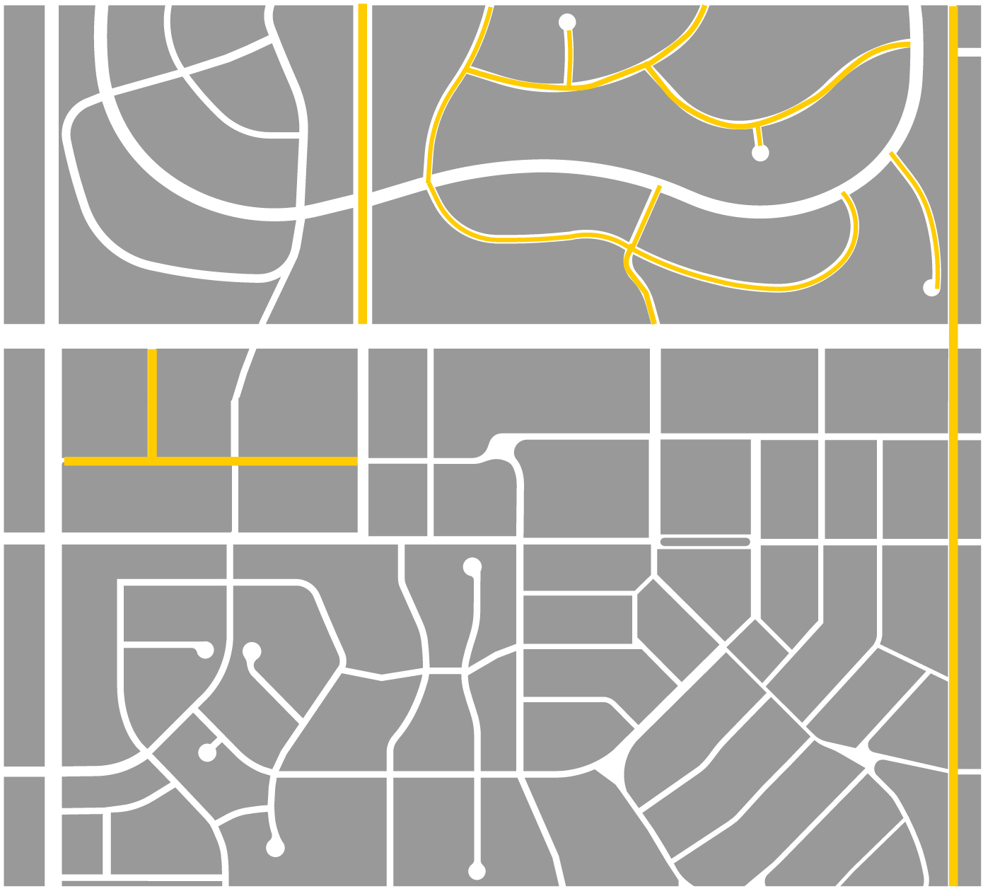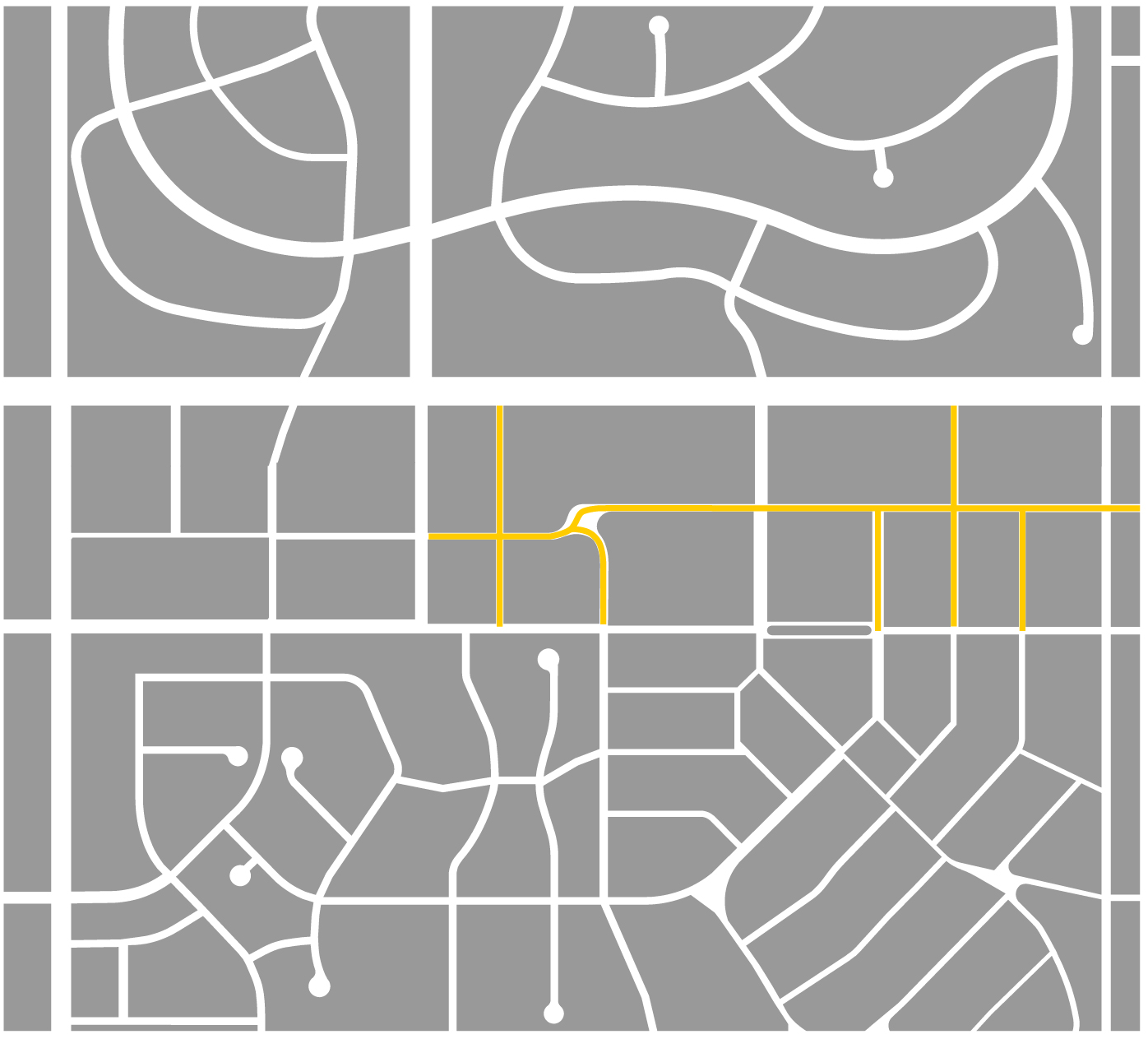 Build complete and multi-modal networks of small, well-connected streets, trails and paths to improve the access, capacity, safety and efficiency of transportation systems.