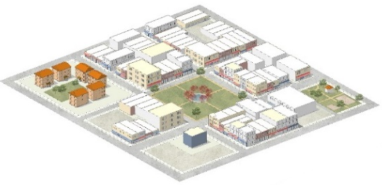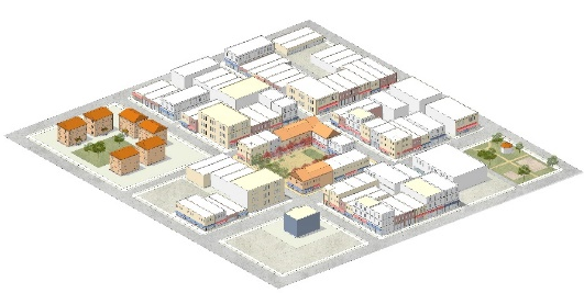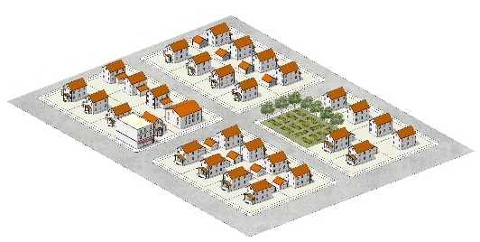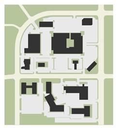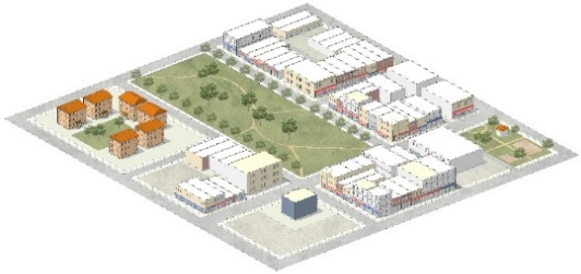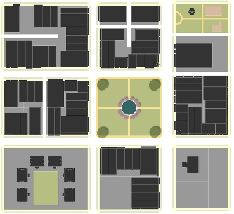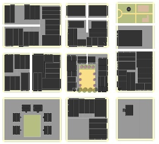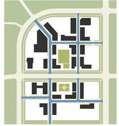 buildings around a system of internal blocks and civic spaces, rather than islands