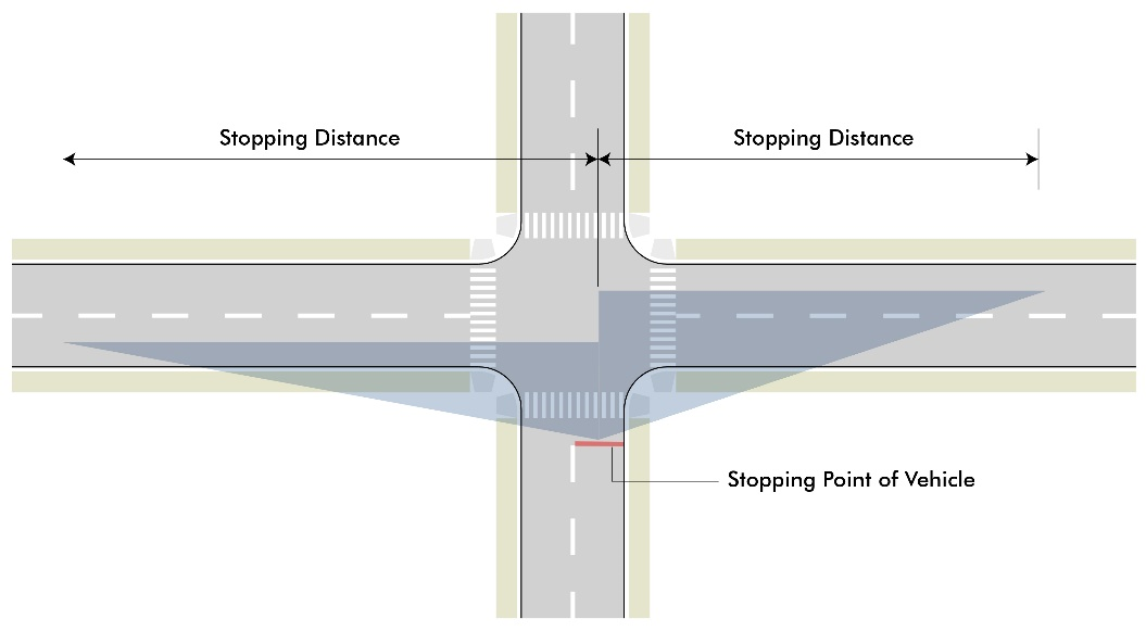 Fully controlled intersections where signalization establishes and prioritizes safe turning movements may deviate from the above sight triangle standards if site conditions warrant and based upon a recommendation of the Director.