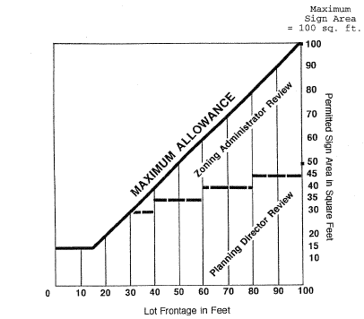 For lots having a primary frontage of more than one hundred (100) feet where signage in excess of one hundred (100) square feet is being requested;