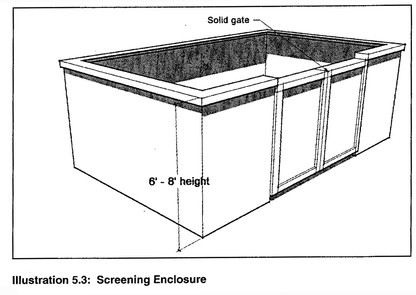 The privacy fencing or similar approved opaque screening materials shall be a minimum of eight feet in height; a greater height of fencing shall be used as necessary to screen taller equipment sheds within the compound. Provided that equipment sheds which are adjacent to and camouflaged to resemble a structural element of the primary building on site do not have to be fenced.