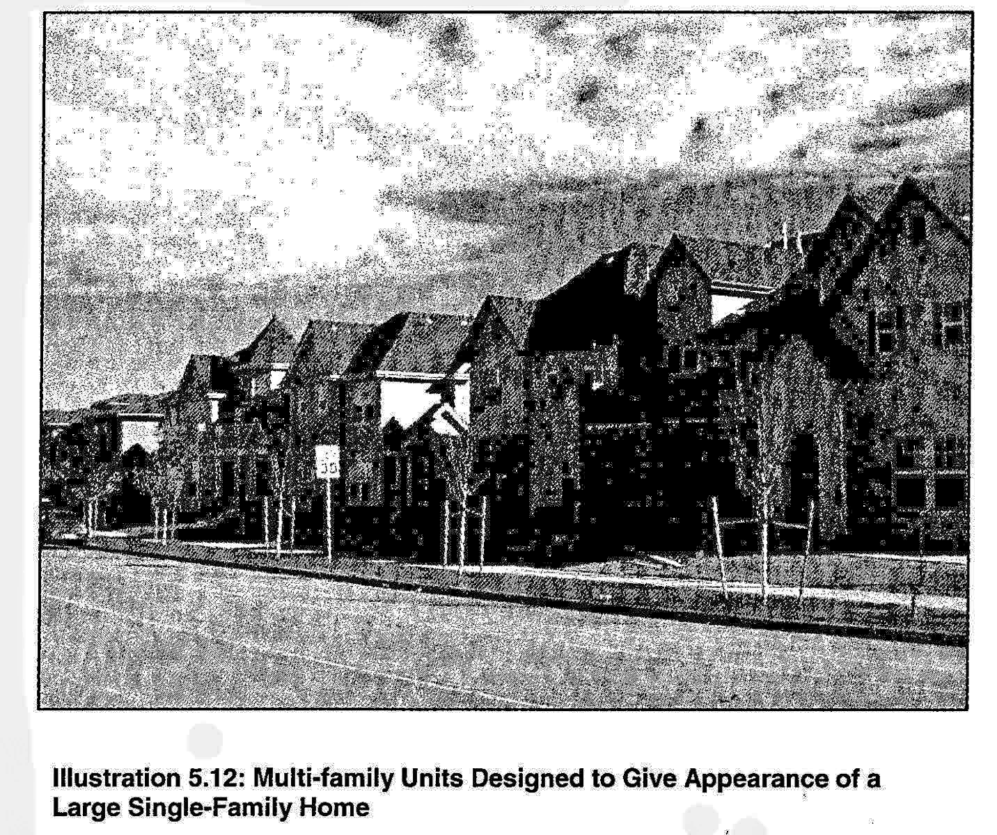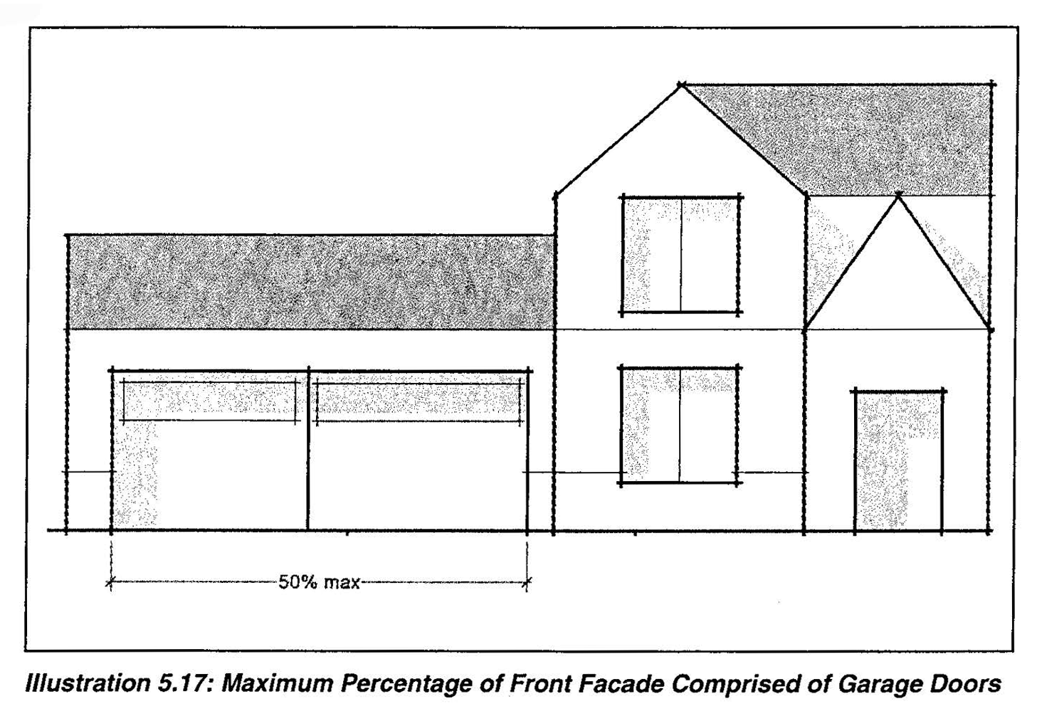 Option 2: An ornamental fence or masonry wall without landscaping, built to the street right-of-way, provided that a planting strip with street trees is provided between the sidewalk and the adjacent public street. (See Illustration 5.2 below.)
